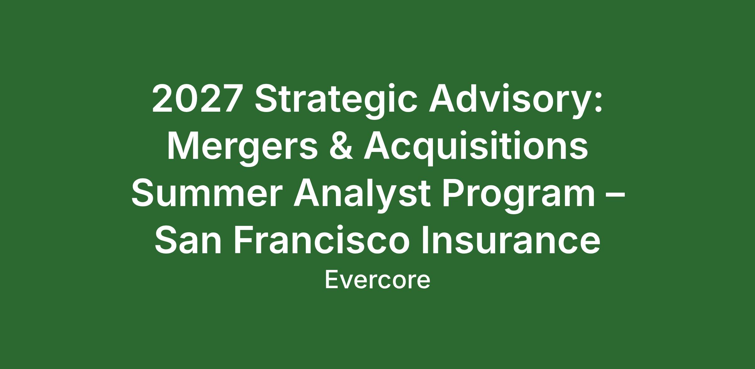 2027 Strategic Advisory: Mergers & Acquisitions Summer Analyst Program – San Francisco Insurance