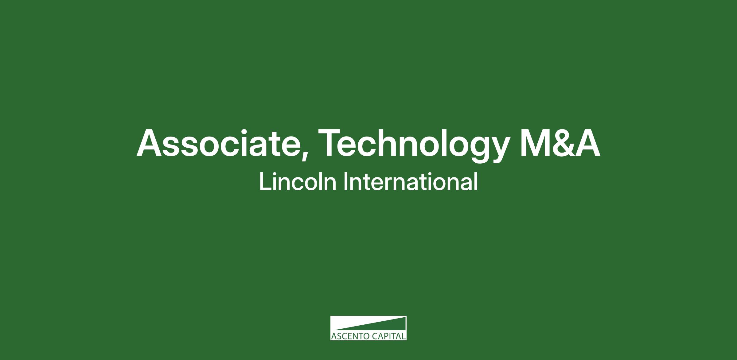 Lincoln International is seeking Associates to join our rapidly growing Technology M&A practice in New York and Chicago. Successful candidates have strong cognitive and interpersonal abilities, want to develop their professional and personal skills, and are motivated by the prospect of building a leading M&A advisory firm.