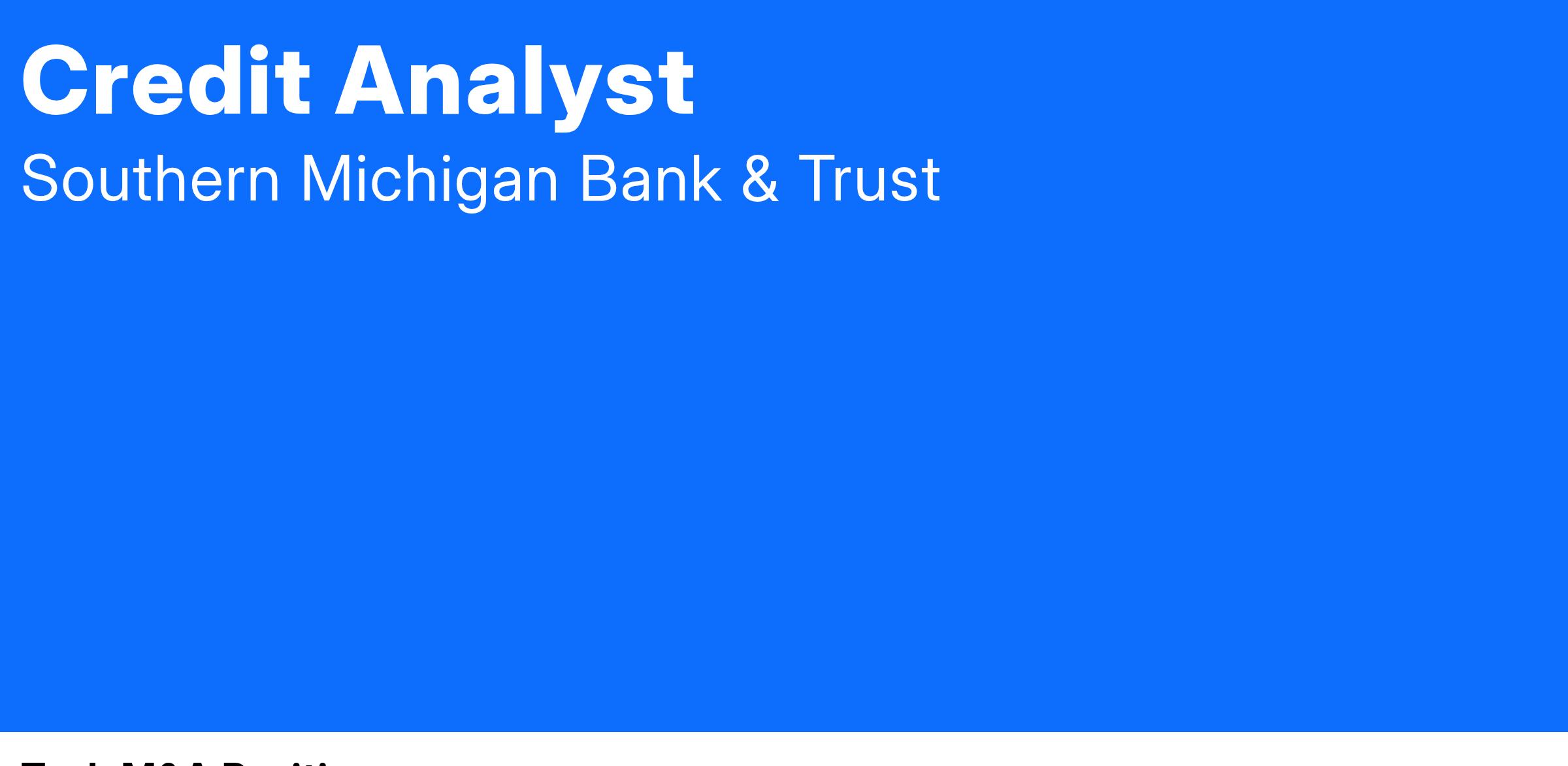 This position evaluates the creditworthiness of commercial loan customers. The Credit Analyst is responsible for contributing to the loan decision-making process, providing in-depth credit analysis of new and existing customers for the bank. A credit analyst must be able to effectively report results and decisions orally and in writing. They must also be able to work on multiple credits at the same time and prioritize them properly. All other duties and responsibilities as assigned.
