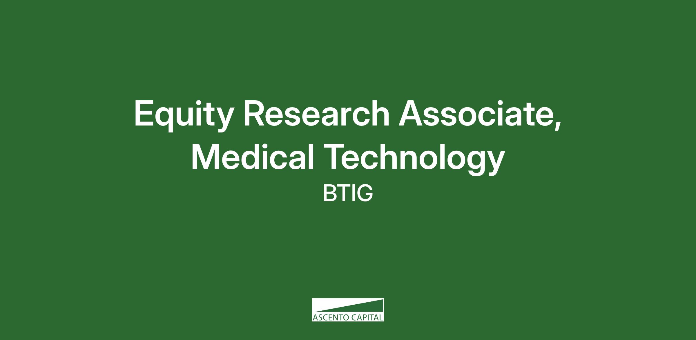 BTIG seeks an Associate to join the growing Medical Technology Research team in either our Chicago or New York office. This individual will be responsible for assisting Senior Analysts in the Healthcare sector focusing on the areas of Medical Technology. The main focus of this role will be conducting primary research, including financial analysis, due diligence on industry trends, and company management and strategies. The ideal candidate will be a self-starter, highly motivated and hard-working individual.