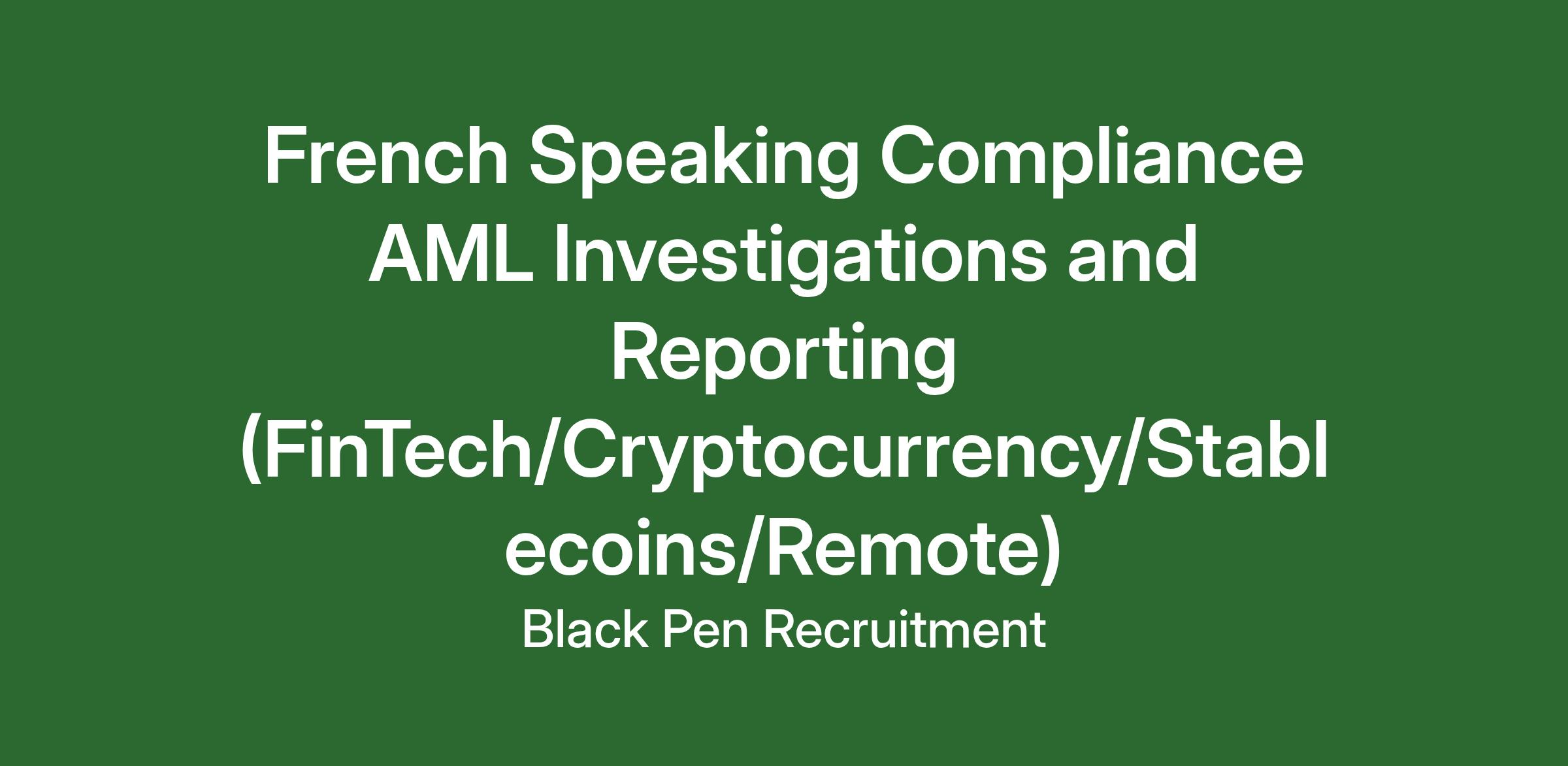 French Speaking Compliance AML Investigations and Reporting (FinTech/Cryptocurrency/Stablecoins/Remote)