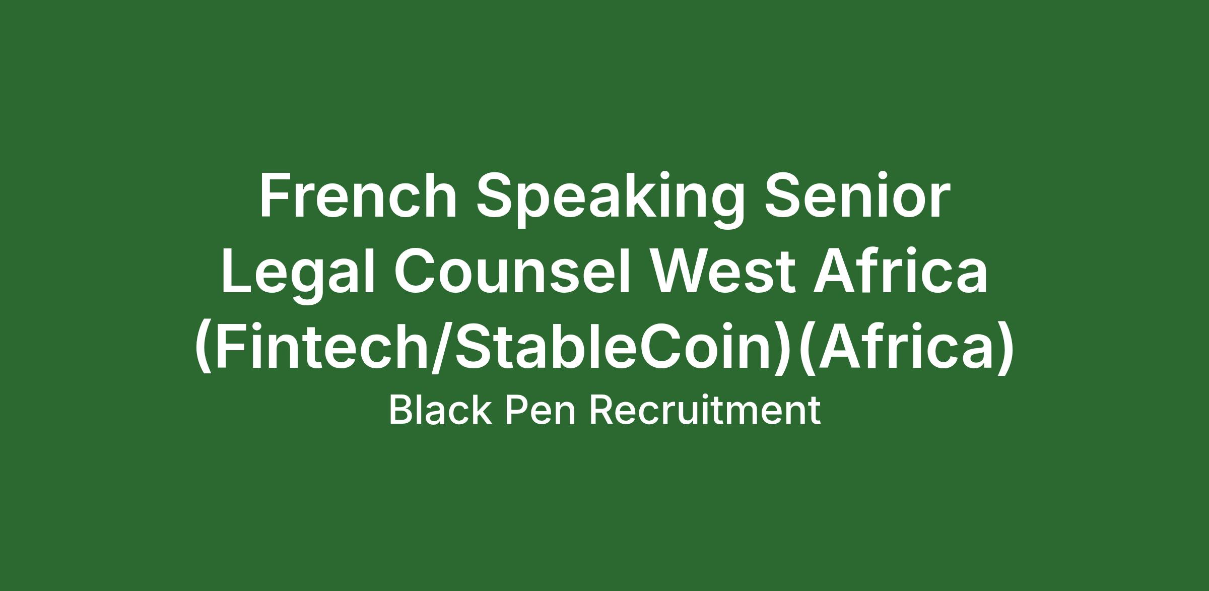 - 5+ years of legal experience in French-speaking West Africa (either on-the-ground or actively from Europe) as an associate with a leading international or local law firm and/or as an in-house attorney with a major financial services institution or Fintech