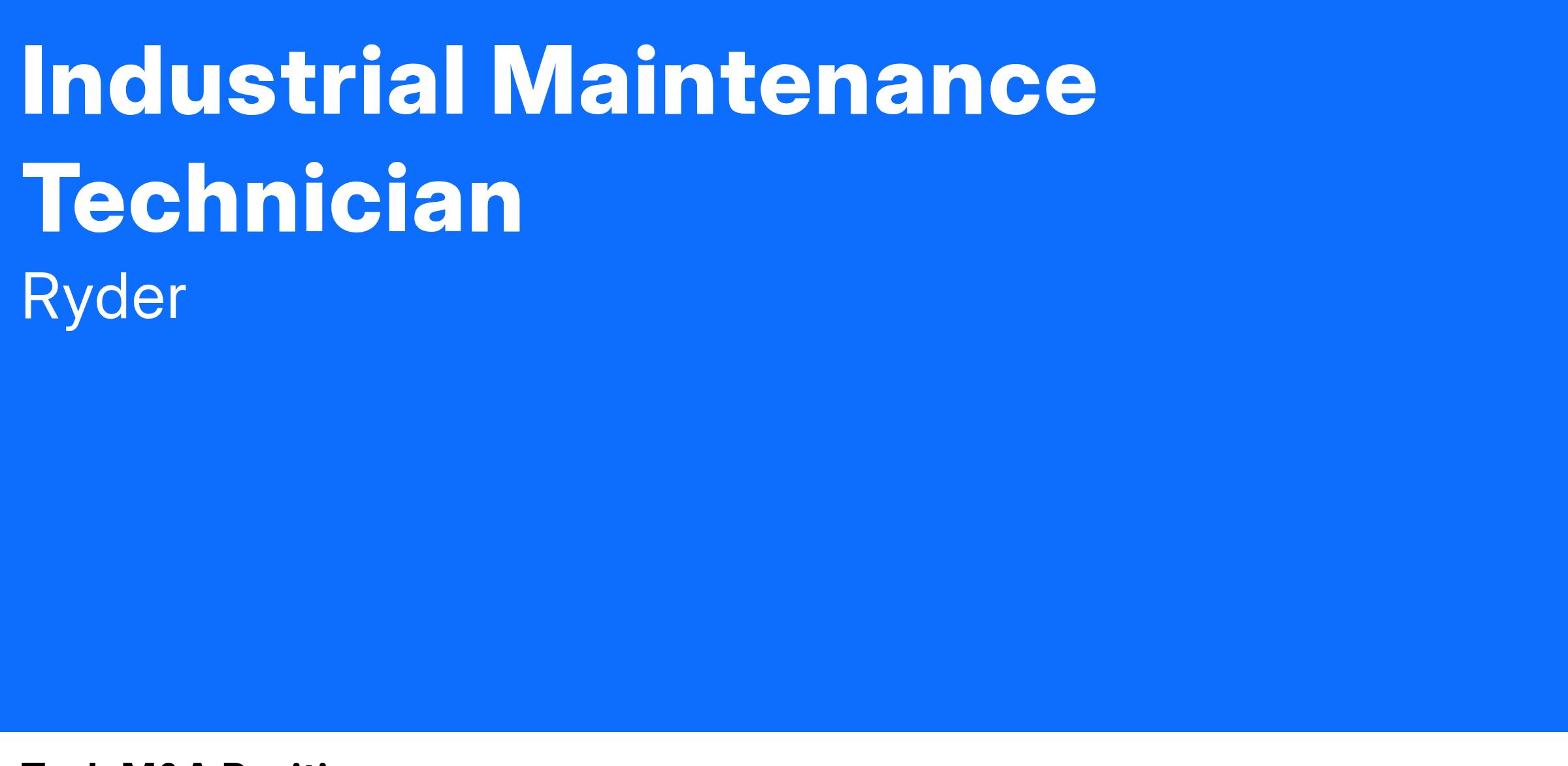 Ryder is immediately hiring a Permanent Full Time Warehouse Automation Maintenance Technician in Dallas, TX