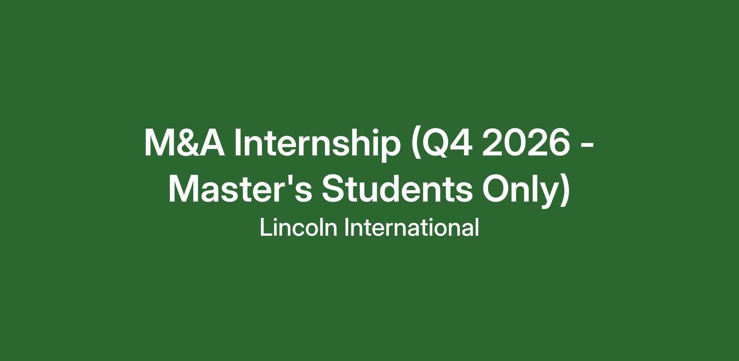 Lincoln International is committed to creating a diverse environment and is proud to be an equal opportunity employer. All qualified applicants will receive consideration for employment without regard to race, color, religion, gender, gender identity or expression, sexual orientation, national origin, genetics, disability, age, or veteran status. We encourage you to read more about our commitment to diversity and Environmental, Social & Governance (ESG) efforts.