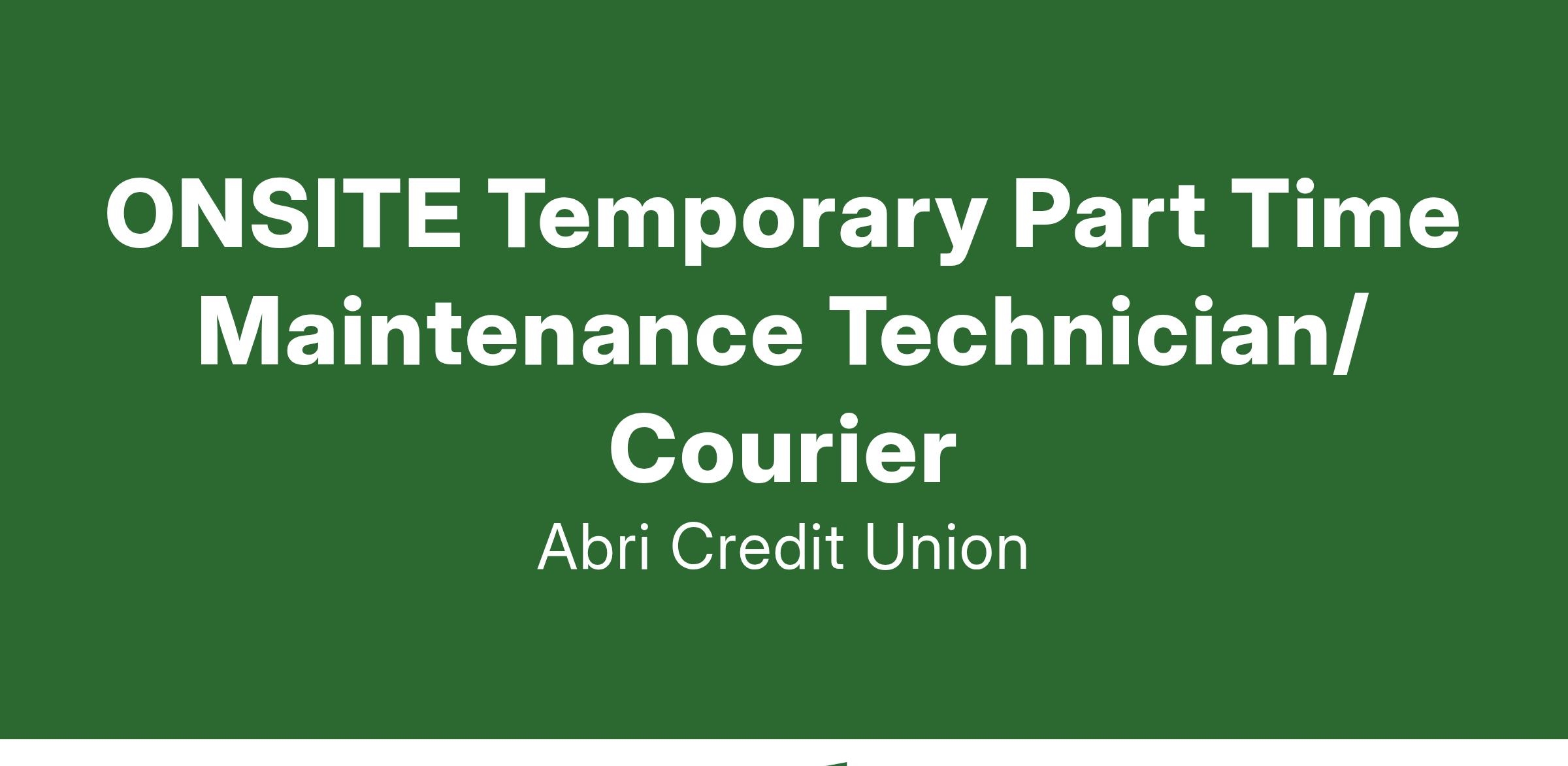 As Abri Credit Union's Temporary Part Time Maintenance Technician/ Courier you will...