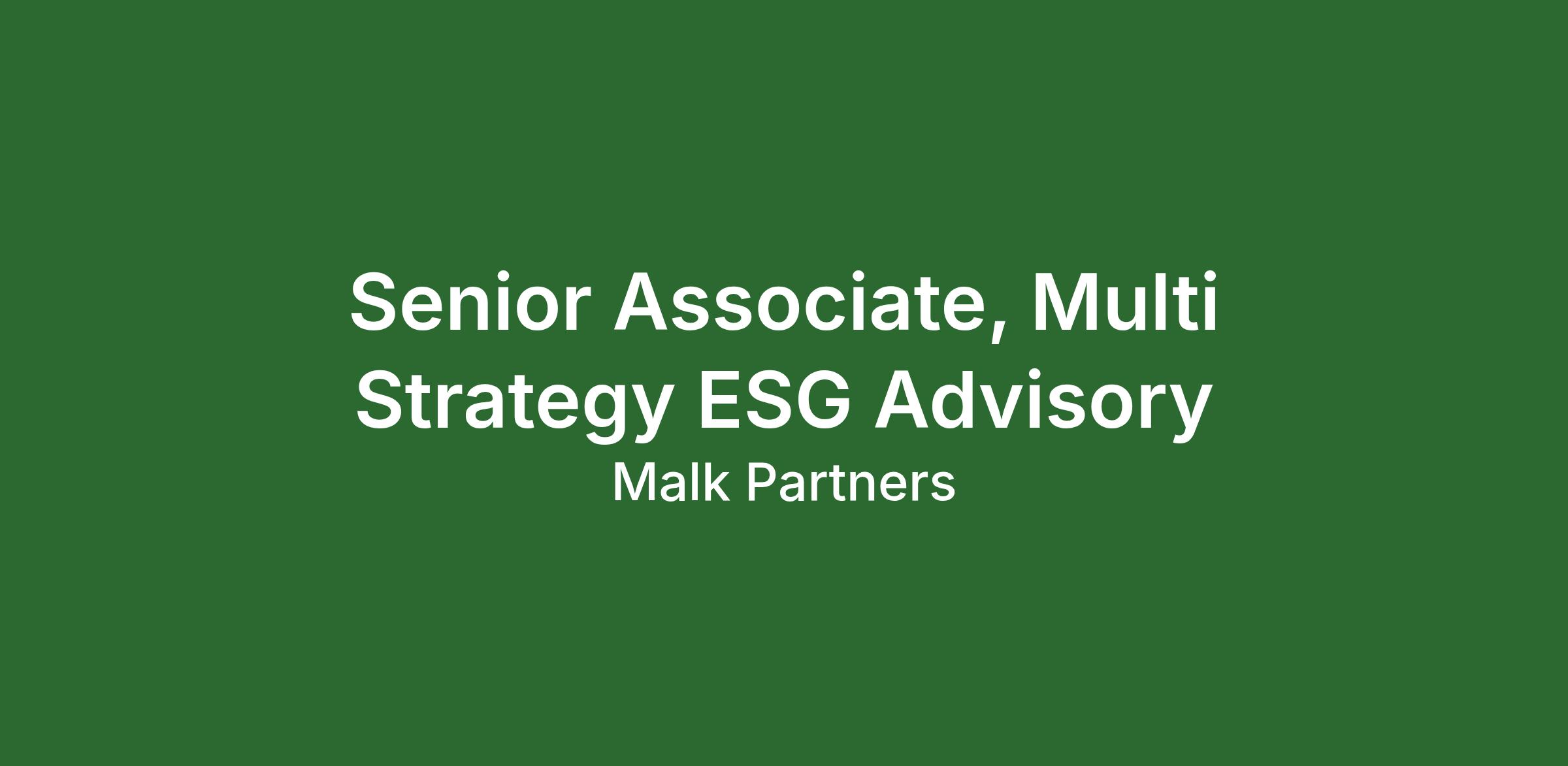 Senior Associates on Malk’s Multi-Strategy team support clients in building and enhancing ESG programs across various asset classes, including private equity, private credit, real estate, secondaries, venture capital, and hedge funds. Malk’s Fund Advisory work focuses on developing tailored ESG management strategies to meet each client’s priorities. Previous projects have included development of an ESG program for a GP stakes firm, creation of ESG maturity models and frameworks for a multi-strategy asset owner, and the design and execution of ESG data collection strategies. In addition to Fund Advisory projects, Senior Associates support Multi-Strategy clients by performing ESG due diligence reviews for their prospective acquisitions.