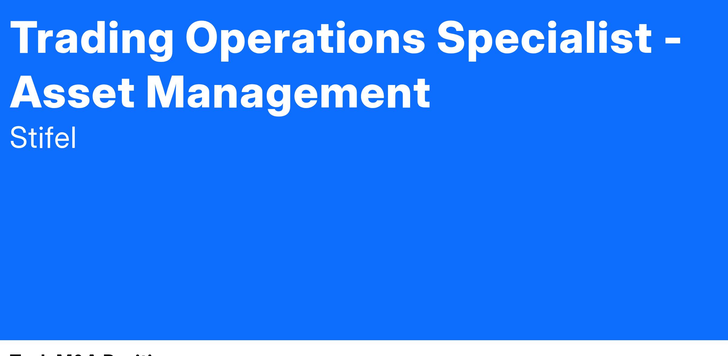 The Trading and Operations Specialist supports the Washington Crossing Advisors (WCA) Trading and Operations team and is responsible for the day-to-day operations and coordination of trading activities. Washington Crossing Advisors is a wholly owned subsidiary of Stifel Financial Corp.